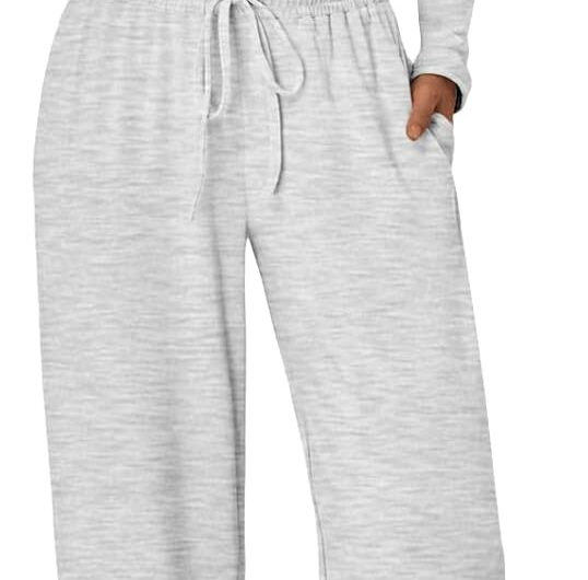 - Trendy Queen Women’s 2 Piece Matching Lounge Set Long Sleeve Side Ruching Top Wide Leg Drawstring Pants Set with Pockets